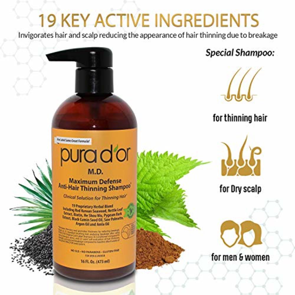 Pura Dor Md Anti Hair Thinning Shampoo W 0 5 Coal Tar Biotin Shampoo 16oz 19 Dht Herbal Blend For Dry Itchy Scalp No Sulfates For Men Women Packaging Varies